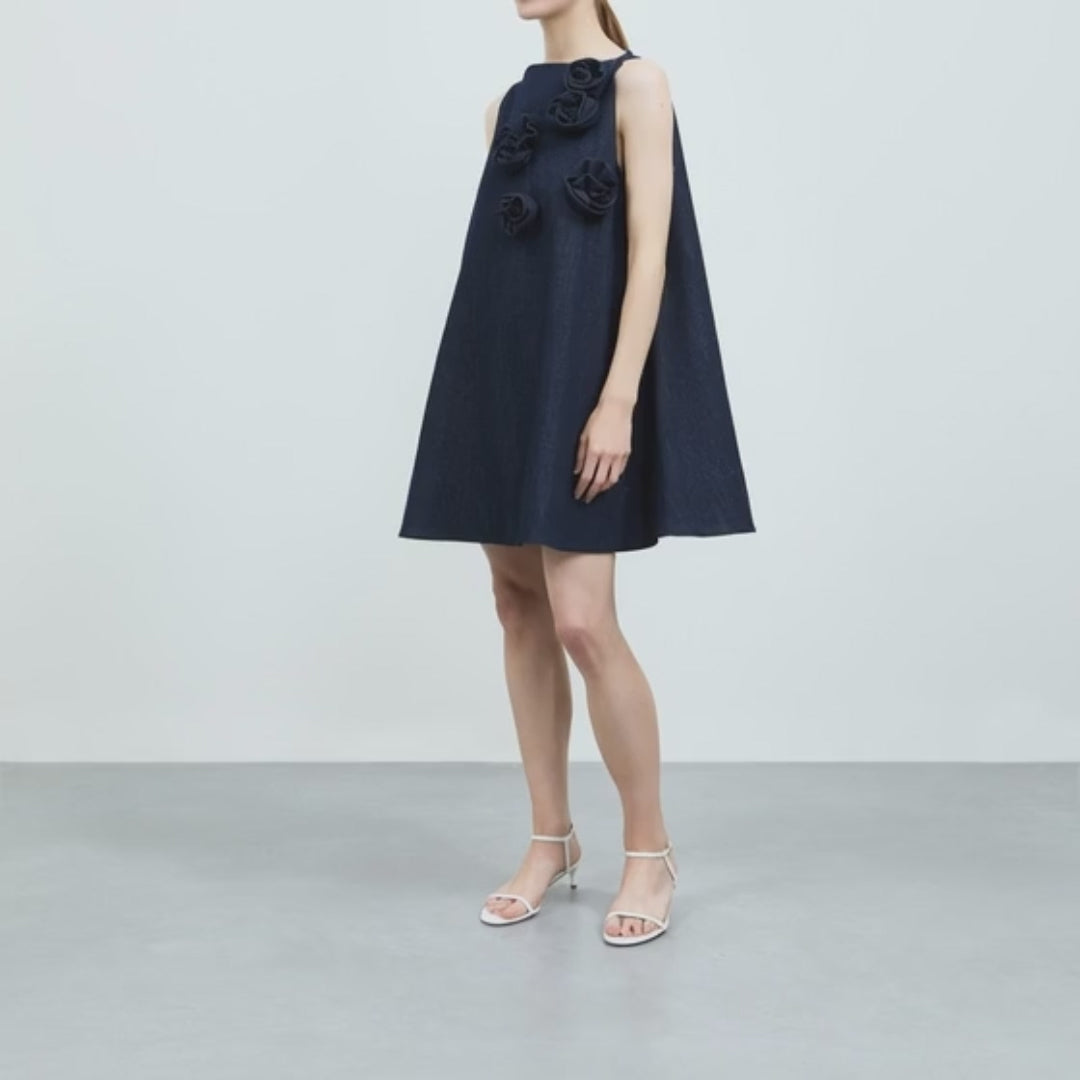The Barbara Dress Flower is defined by its sculptural A-line silhouette and cascading floral appliqués. Crafted in a refined denim, it brings a modern sense of romance with an unexpected, casual edge.