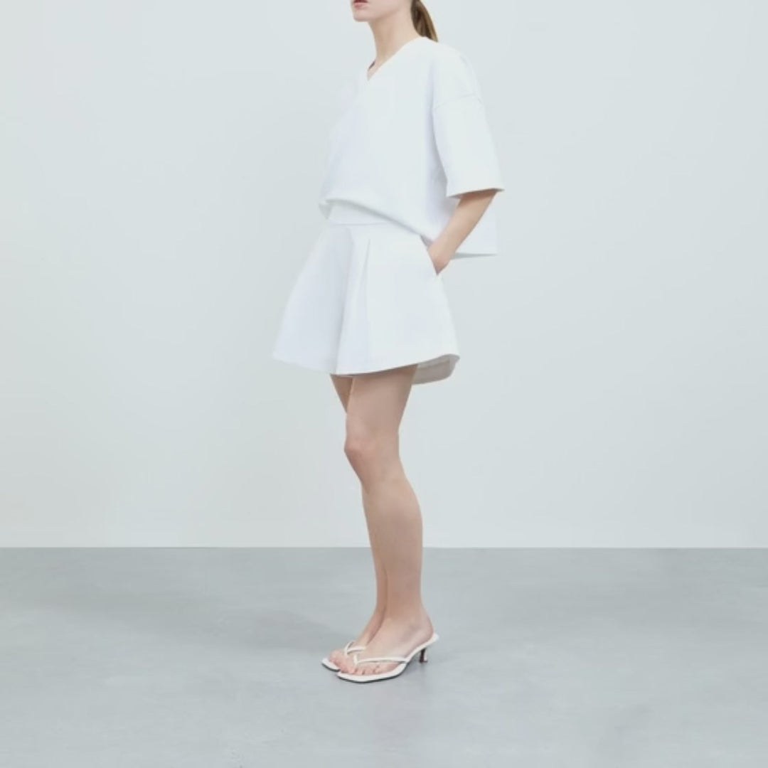 The Leon Shorts feature a high-waisted fit with subtle pleating for added volume and movement. Designed with clean lines and a flared hem, they offer a modern take on a timeless summer silhouette.